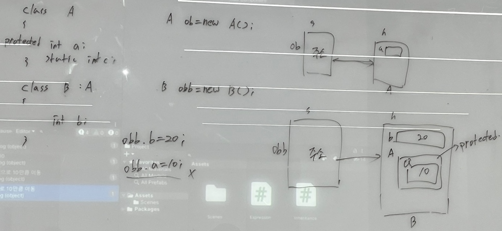 - obb2.b=20;은 성립하지 않는다. => A공간에 접근 한것이지 B의 공간을 사용하는것이 아니기에 b의 공간에 접근하지 못한다.