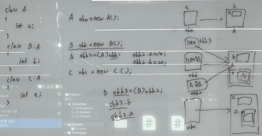 - B obb3 = (B) obb2;는 다운 캐스팅으로 A에서 A의 공간을 가지고 있는 B로 이동하는것이기에 가능한 것이다.