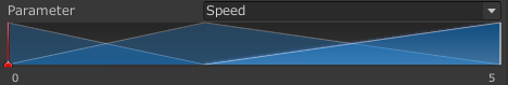 - 각각의 모션이 최종 효과에 어느 정도 영향을 주도록 할 것인지는 블렌딩 파라미터 를 사용하여 제어하는데, 이 파라미터는 애니메이터 컨트롤러에 관련된 수치인 애니메이션 파라미터 중에서 하나다.