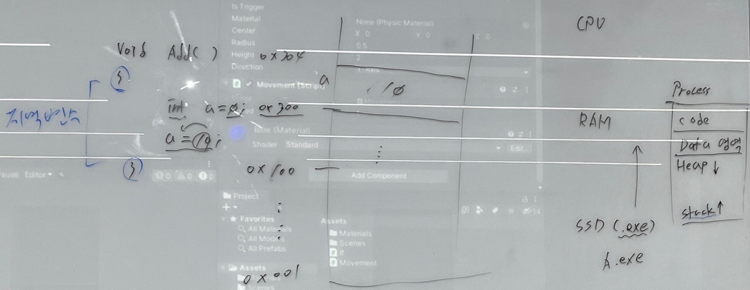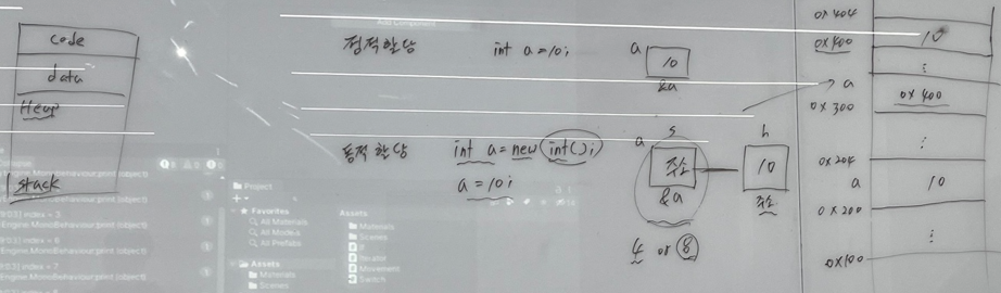 - 동적할당 => int a = new int(); => 크기 지정을 하지않고 우리가 마음대로 늘려서 사용하는 공간이다.